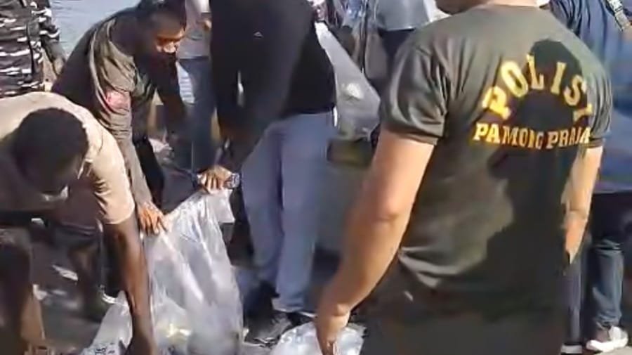 Sekitar pukul 06.10 WIT, para penumpang mulai turun dari kapal selanjutnya personil gabungan melaksanakan razia terhadap para penumpang yang turun beserta barang bawaan hingga pukul 09.00 WIT.