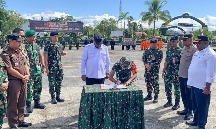 Timika, Papuadaily – Bupati Mimika, Johannes Rettob, secara resmi membuka program TNI Manunggal Membangun Desa (TMMD) ke-128 Kodim 1710/Mimika tahun anggaran 2026 yang dipusatkan di Kampung Keakwa, Distrik Mimika Tengah, pada Rabu, (22/4/2026).