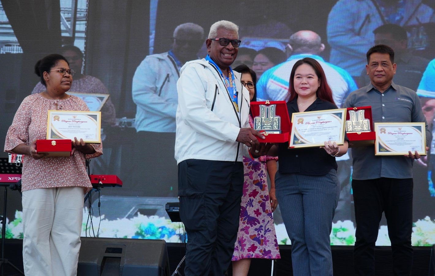 Johannes bersama Kepala Bapenda Mimika pada kesempatan itu memberikan penghargaan kepada wajib pajak teladan dan mitra penggerak Bea Perolehan Hak atas Tanah dan Bangunan (BPHTB), termasuk para notaris yang terus membantu pemerintah dalam meningkatkan kepatuhan pajak.
