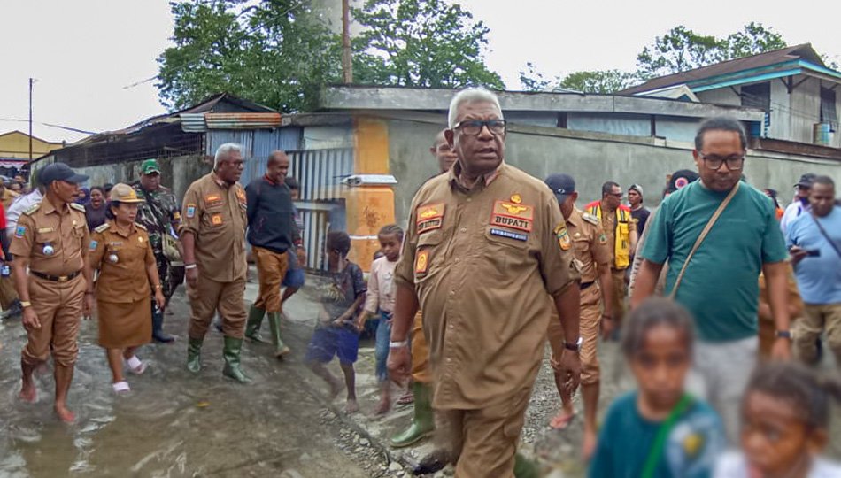 Pada Selasa (19/8/2025) sore, Bupati John mendatangi lokasi tergenang banjir di sekitar Perumahan Matoa Timur depan Lanud Yohanes Kapiyau, Jalan Bandara Lama, Busairi Ujung serta Jalan Pattimura, hingga SP1 Distrik Wania.