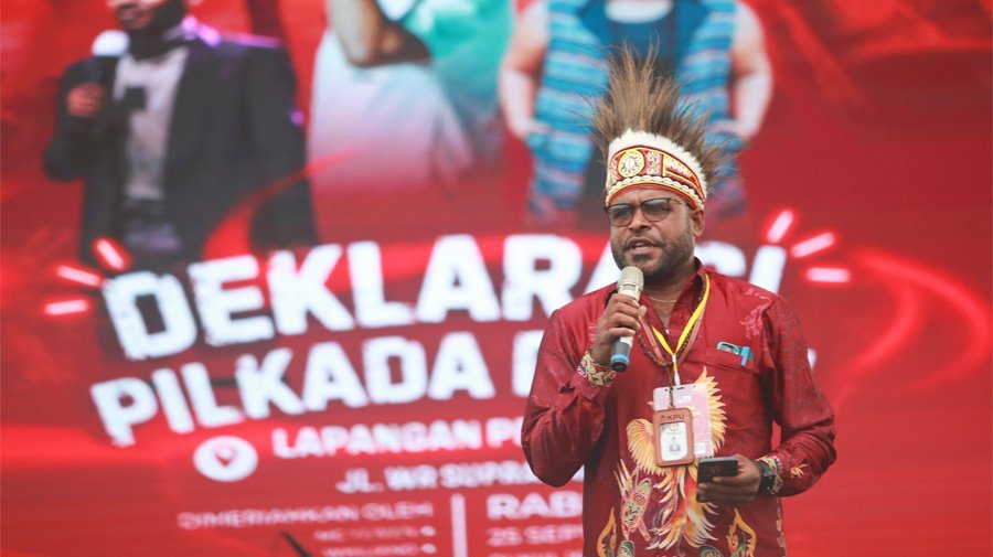 Ketua KPU Mimika, Dete Abugau berucap syukur karena hari ini bisa melaksanakan deklarasi kampanye damai Pilkada tahun 2024.