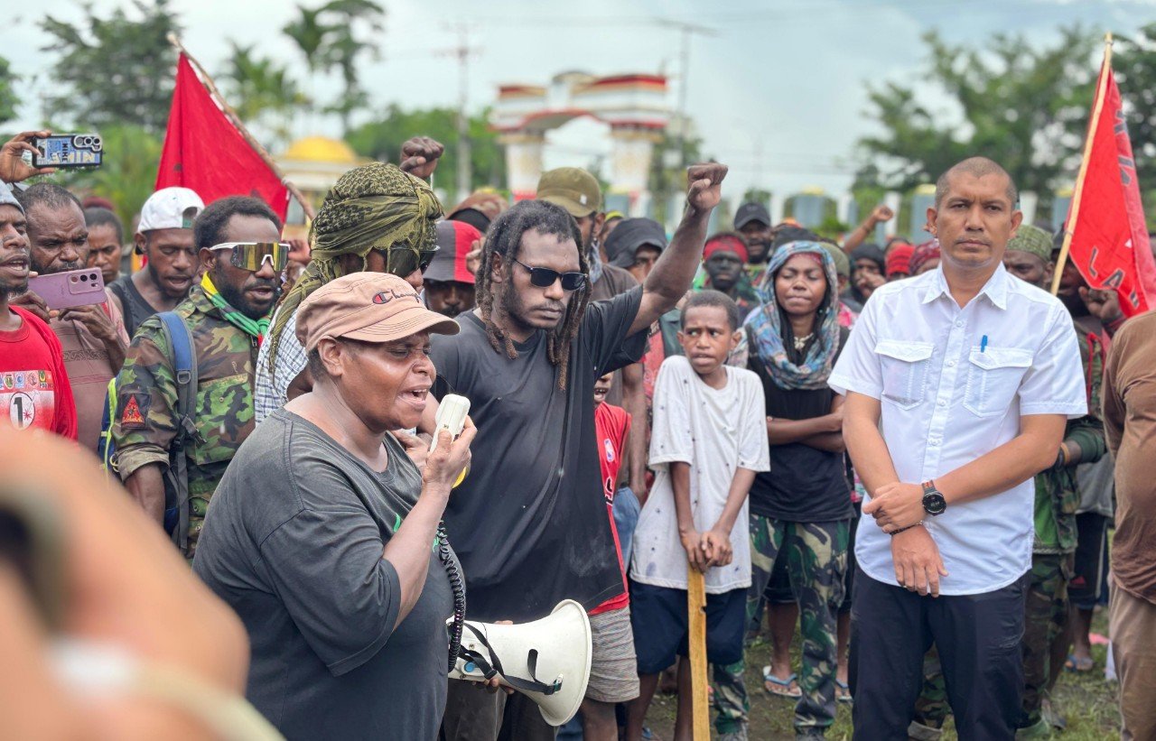 Kapolres Mimika, AKBP Billyandha Hildiario Budiman, menyiagakan 120 personel Polri (dengan dukungan Brimob dan Babinsa TNI) untuk mengamankan acara yang diikuti massa dari dua titik, Petrosea dan SP2, sebelum menuju Gedung DPRK Mimika.