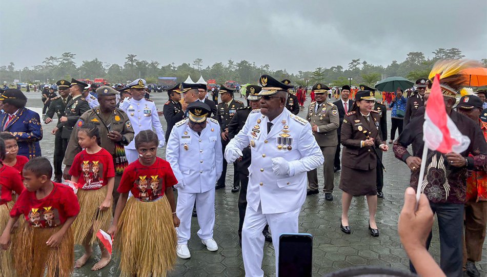 Timika, Papuadaily – Bupati Mimika Johannes Rettob menjadi Inspektur Upacara peringatan Hari Ulang Tahun (HUT) ke-80 Republik Indonesia (RI) 2025 yang berlangsung di lapangan Pusat Pemerintahan Kabupaten Mimika, Minggu ( 17/8/2025).