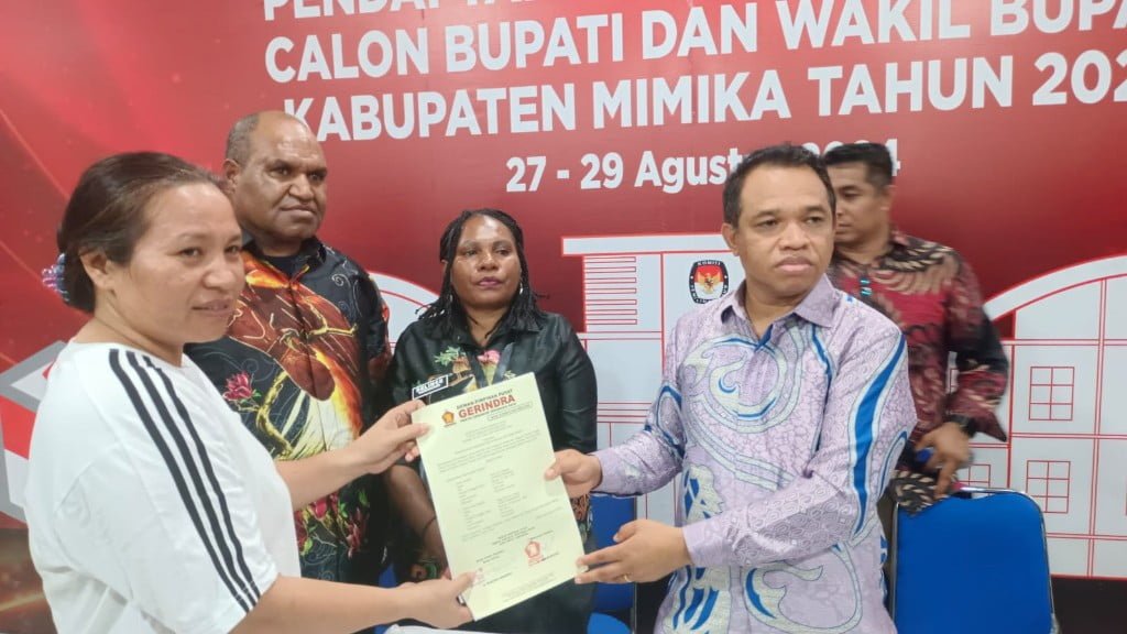 Delegasi Partai Gerindra menyerahkan syarat dukungan ke KPU Mimika usai pleno klarifikasi, Kamis (29/8/2024)