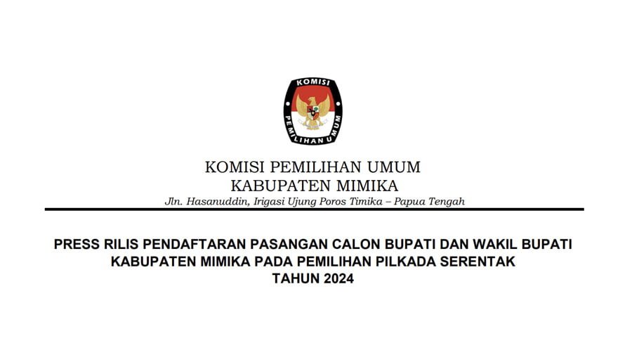 Timika, Papuadaily – Komisi Pemilihan Umum (KPU) Kabupaten Mimika, Papua Tengah merilis partai politik pendukung masing-masing bakal calon bupati dan wakil bupati yang akan berkontestasi di Pilkada Mimika 2024.