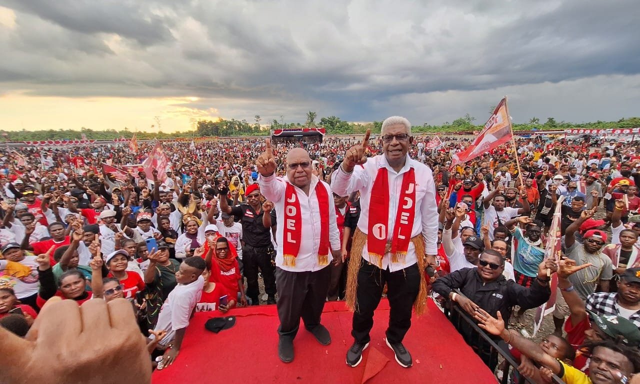 Timika, Papuadaily – Puluhan ribu massa pendukung tak terbendung membanjiri kampanye akbar pasangan calon bupati dan wakil bupati Mimika, Johannes Rettob – Emanuel Kemong (JOEL) di lapangan Aeromodelling SP5, Kabupaten Mimika, Papua Tengah, Sabtu (23/11/2024).