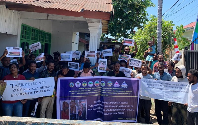 Timika, Papuadaily – Himpunan Pelajar dan Mahasiswa Puncak Jaya (HPM-PJ) kota studi Makassar menuntut pemerintah Indonesia memberikan jaminan hukum kepada masyarakat Papua lebih khusus di Intan Jaya menyusul penembakan tiga warga sipil pada 16 Juli 2024 lalu.