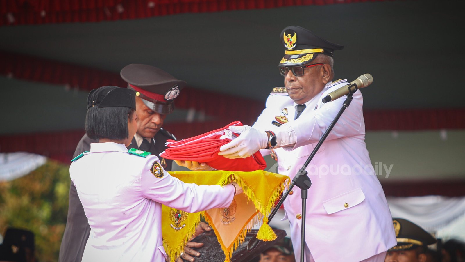Timika, Papuadaily – Marzalina Meylanie Vasty Warwey sukses membawa baki duplikat bendera pusaka pada upacara HUT ke-79 RI di Kabupaten Mimika, Papua Tengah, Sabtu (17/8/2024).