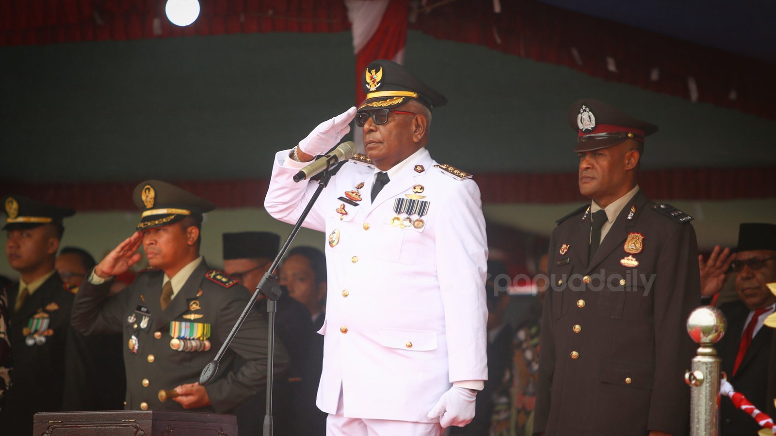 Bupati Mimika Johannes Rettob bertindak sebagai inspektur upacara. Meski sempat diguyur hujan, upacara pengibaran sang saka Merah Putih berlangsung khidmat.