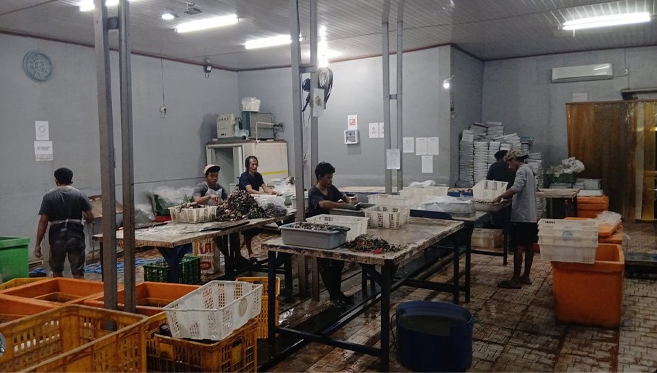 “Proses produksi seafood di perusahaan kami mencakup penerimaan bahan baku, penimbangan, penyortiran, pencucian, penyusunan, pembekuan, pengemasan, hingga penyimpanan beku. Semua tahapan itu sangat bergantung pada ketersediaan bahan penunjang seperti air bersih hasil uji laboratorium, es batu, sarung tangan karet, dan chlorine untuk menjaga higienitas,” jelasnya.