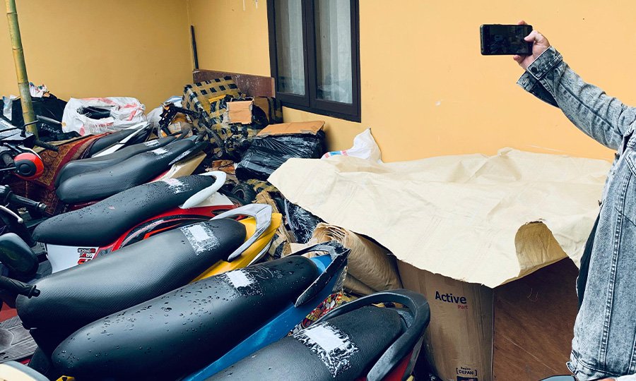 Polisi melakukan pemeriksaan setelah mencurigai barang-barang sepeda motor itu saat hendak diselundupkan. Polisi kemudian mendapati tiga unit sepeda motor dan langsung melakukan penyitaan di lokasi.