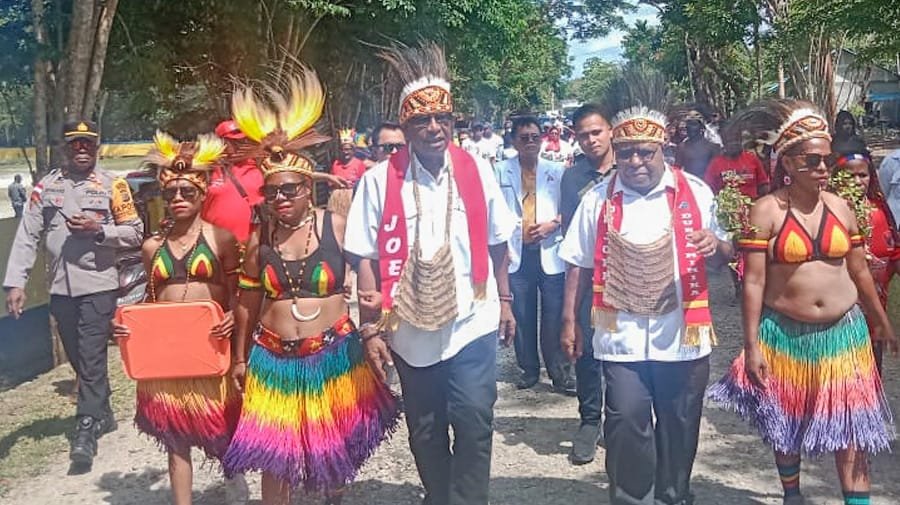 Begitu tiba, pasangan John-Emanuel atau JOEL disambut tarian Bakori oleh warga Suku Kapawe Kamoro, dan tarian Wisisi oleh warga Suku Nduga.