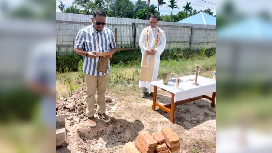 Mappi, Papuadaily – Penjabat Bupati Mappi, Dr. Michael R. Gomar S.STP.,M.Si melalukan Peletakan Batu Pertama pembangunan Taman Doa Gua Maria Gereja Paroki St. Yakobus Rasul di Kota Kepi Kabupaten Mappi, Provinsi Papua Selatan, Sabtu 21/9/2024).