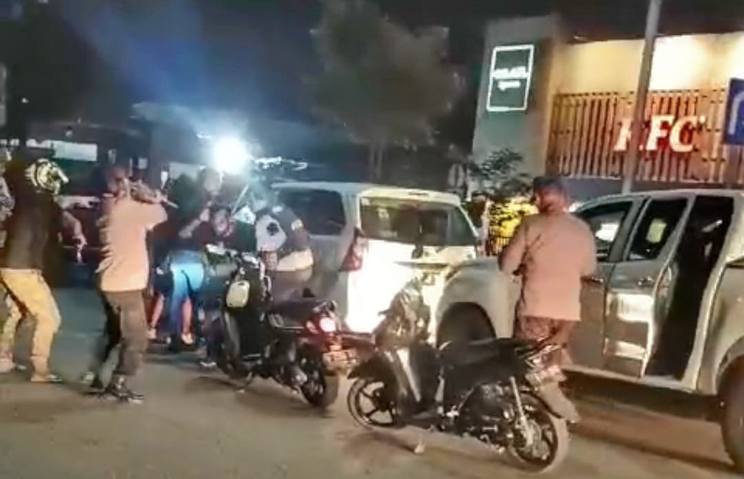 Empat orang pria tersebut ditangkap setelah polisi melakukan pengejaran. Terekam video amatir, polisi mencegat mobil putih yang ditumpangi para pelaku tepat di depan KFC, Jalan Cenderawasih.