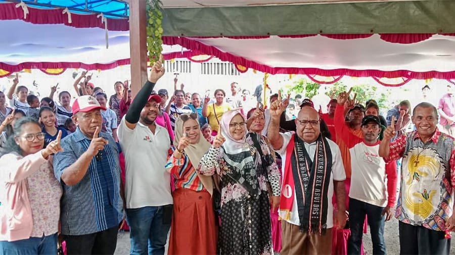 Timika, Papuadaily – Calon bupati dan wakil bupati Mimika nomor urut 1 Johannes Rettob-Emanuel Kemong (JOEL) tatap muka bersama relawan Lelemuku for JOEL di belakang Surabaya Motor, Kebun Siri, Timika, Minggu (27/10/2024).