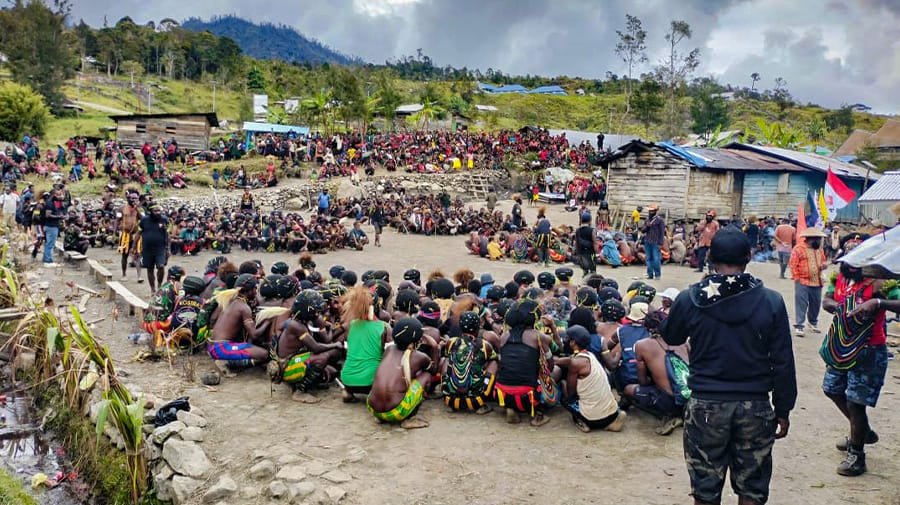 Kedatangan Elvis Tabuni dan Naftali Akawal disambut antusias masyarakat di Bandara Agandugume, tempat pertemuan berlangsung. Ribuan masyarakat beserta seluruh kepala kampung, tokoh adat, tokoh agama dan pihak keamanan hadir dalam pertemuan tersebut.
