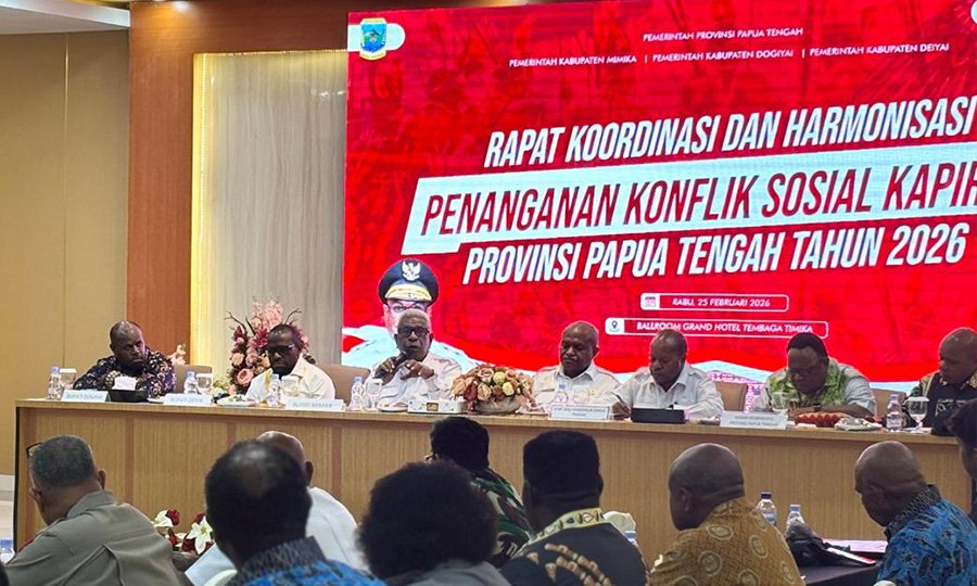 Kesepakatan tersebut disampaikan dalam rapat koordinasi lanjutan penanganan konflik sosial di Kapiraya yang digelar Pemerintah Provinsi Papua Tengah, Rabu (25/2/2026).