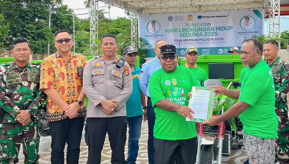 Timika, Papuadaily – Pemerintah Kabupaten Mimika melalui Dinas Lingkungan Hidup membagikan 13 unit kendaraan roda tiga pengangkut sampah, tepat pada peringatan Hari Lingkungan Hidup Sedunia 2025.