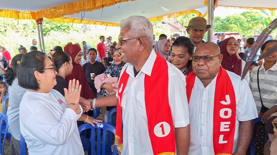 “Jujur saya kaget kalau di sini ada posko kemenangan JOEL, jadi dengan kedatangan kami berdua dan jika kami berdua menang maka kita akan perbaiki wilayah ini,” ungkap Johannes Rettob disambut tepuk tangan meriah dari warga.